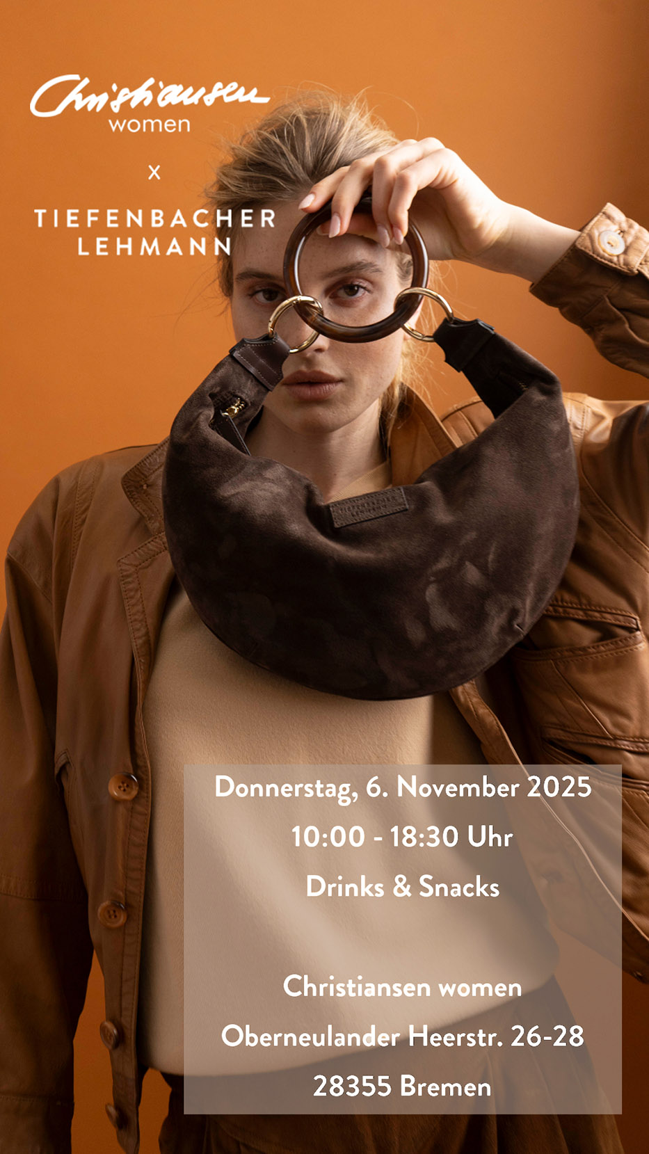Wir laden herzlich zum vorweihnachtlichen Shopping in unser Geschäft ein und stellen gemeinsam mit dem Hamburger Taschen- und Accessoire Label TIEFENBACHER LEHMANN die neue Herbst/Winter Kollektion aus.